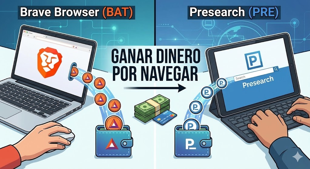 Tu Navegador te debe dinero: La guía definitiva para cobrar por usar Internet con Brave y Presearch (2026)
