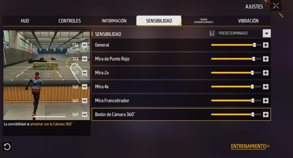 Free Fire ofrece controles separados para distintos aspectos de la cámara y la mira. Estos son los principales: